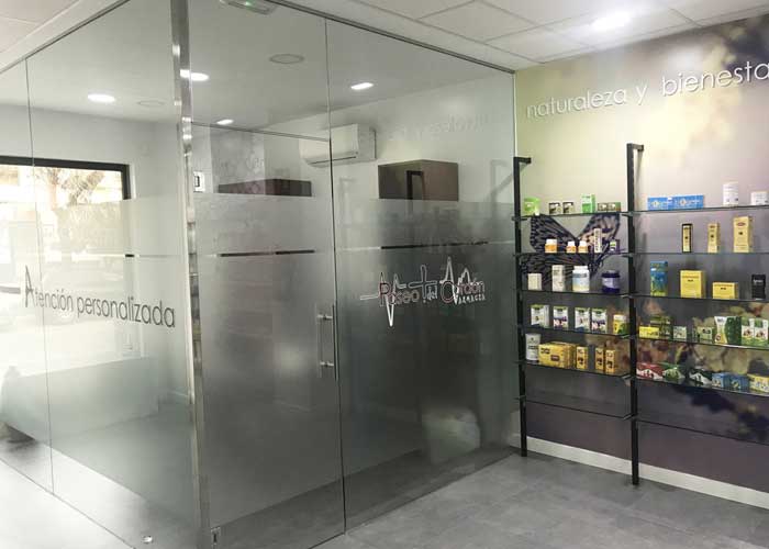 Todo el protagonismo de esta farmacia está concentrado en el mostrador, con un diseño muy personalizado, acorde con el resto del mobiliario.